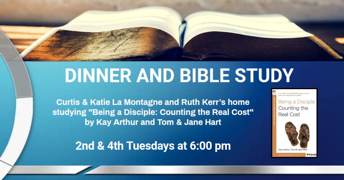 Dinner & Bible Study — hosted by Curtis & Katie La Montagne and Ruth Kerr